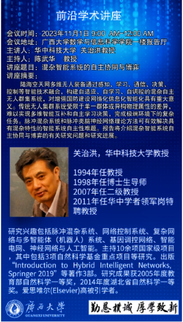 学术讲座:混杂智能系统的自主协同与博弈