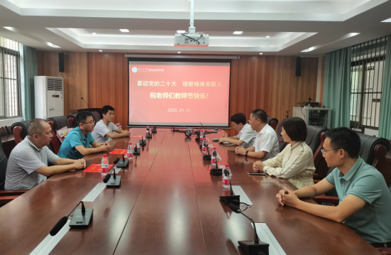在第38个教师节来临之际,9月9日上午,数信学院根据学校统一安排组织开展教师节慰问活动。院党委书记黄建荣、党委副书记郭海燕、副院长刘海东及院分工会主席唐春明对学院教师代表袁功林、谭东和赵大虎进行慰问。院党委书记黄建荣为3位教师代表送上节日的鲜花和诚挚的祝福。