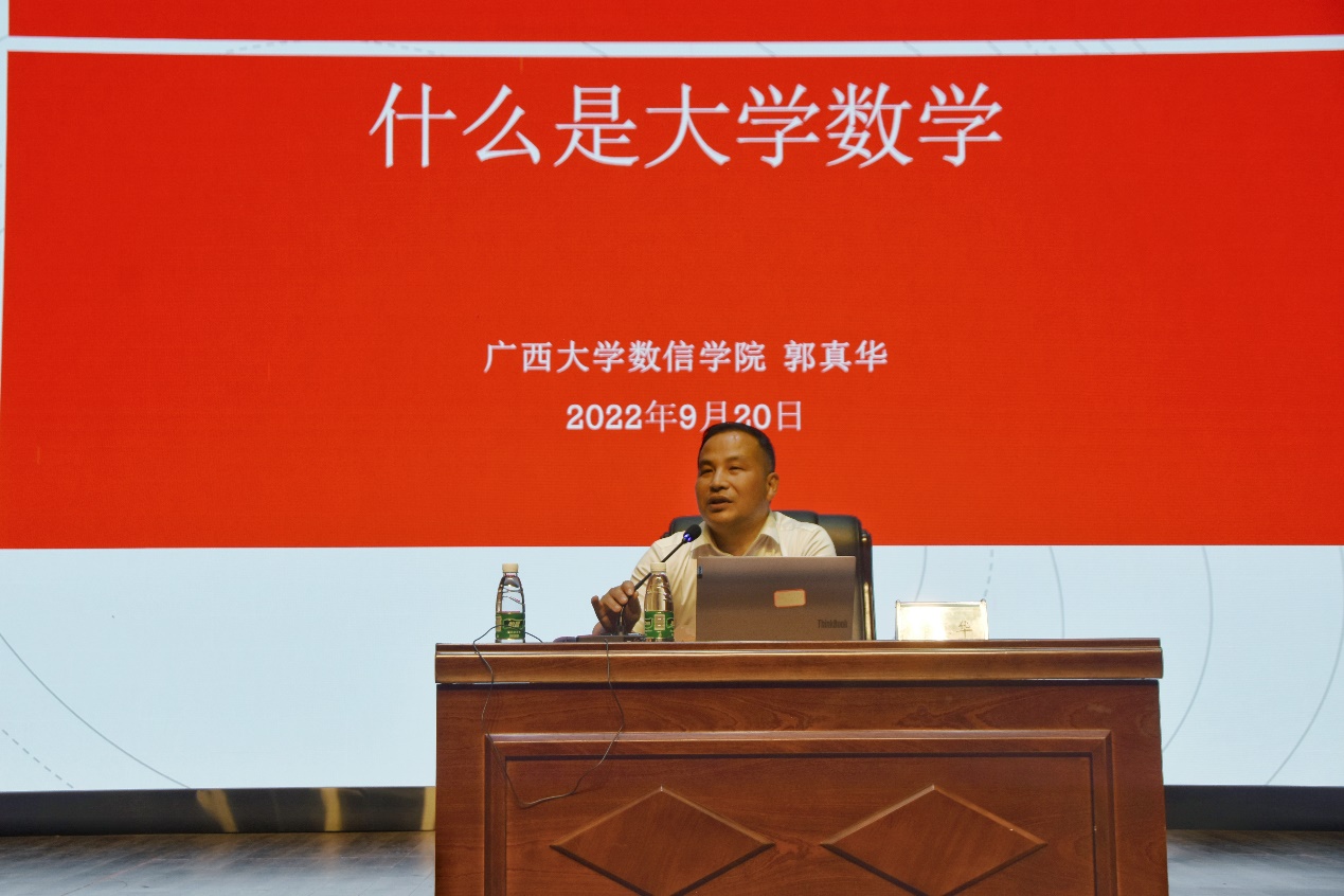 开学典礼结束后,由学院院长、博士生导师、77779193永利官网君武学者郭真华教授为全体新生讲授开学第一课。郭真华院长从“什么是大学”“什么是大学数学”“如何学好大学数学”三个层面,阐述了大学 “立德树人”历史使命的由来和内涵,详细介绍了大学数学作为基础学科的深刻含义、现阶段的重要地位以及学院当前“数学拔尖人才培养实验班-研究型人才”“数据科学实验班-应用型人才”两种数学人才的培养思路,并对在大学如何学习数学、理解数学向新生们提出了具体的指导建议。