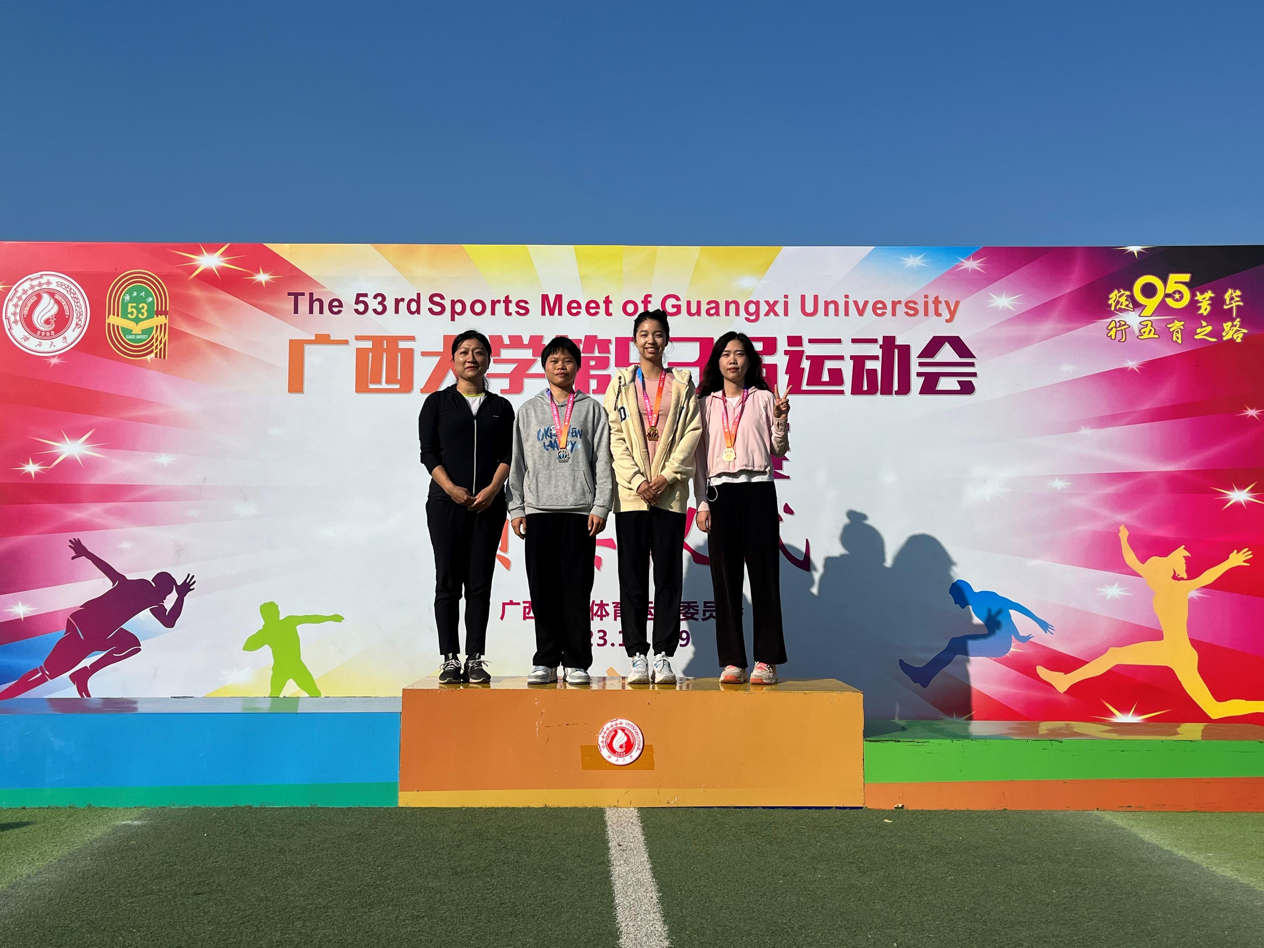 2022级硕士研究生程初楚(右二)获得女子跳远第一名