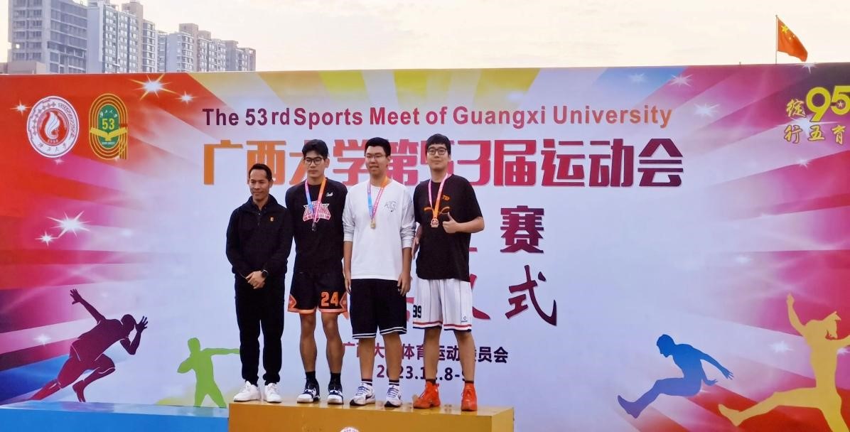 2021级硕士研究生代文昊(右一)获得男子实心球第三名