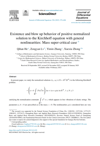 团队成员何其涵副教授的研究领域主要是椭圆型偏微分方程,他在基尔霍夫方程解的存在性及渐进行为取得一系列重要成果。以第一作者的身份,2023年连续在《Journal of Differential Equations》、 中国科学院Top期刊《The Journal of Geometric Analysis》 上发表系列学术论文。