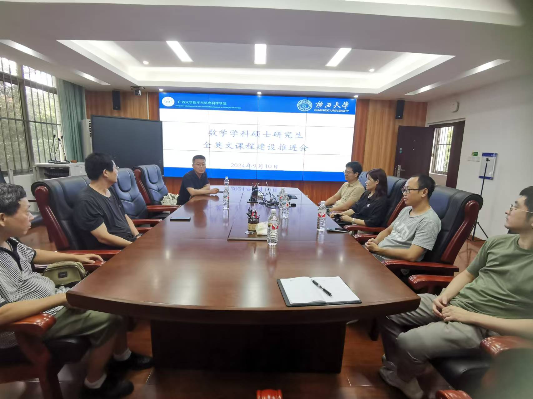 为加速提升数学学科研究生教育的国际化水平,推进全英文教学环境的构建,永利官网于9月10日下午在213会议室召开了数学学科硕士研究生全英文课程建设专项推进会议,会议由袁功林副院长主持,相关课程负责人参会。