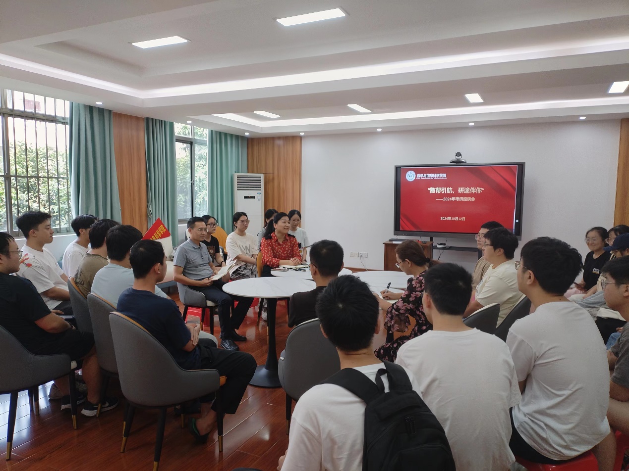 10月12日,77779193永利官网2024年考研座谈会在学院220室举行,学院党委副书记唐旭彬、副院长唐春明、辅导员刘春霞、班主任刘楚箫、张幸以及2021级的全体考研同学参加了座谈会。座谈会由学院党委副书记唐旭彬主持。