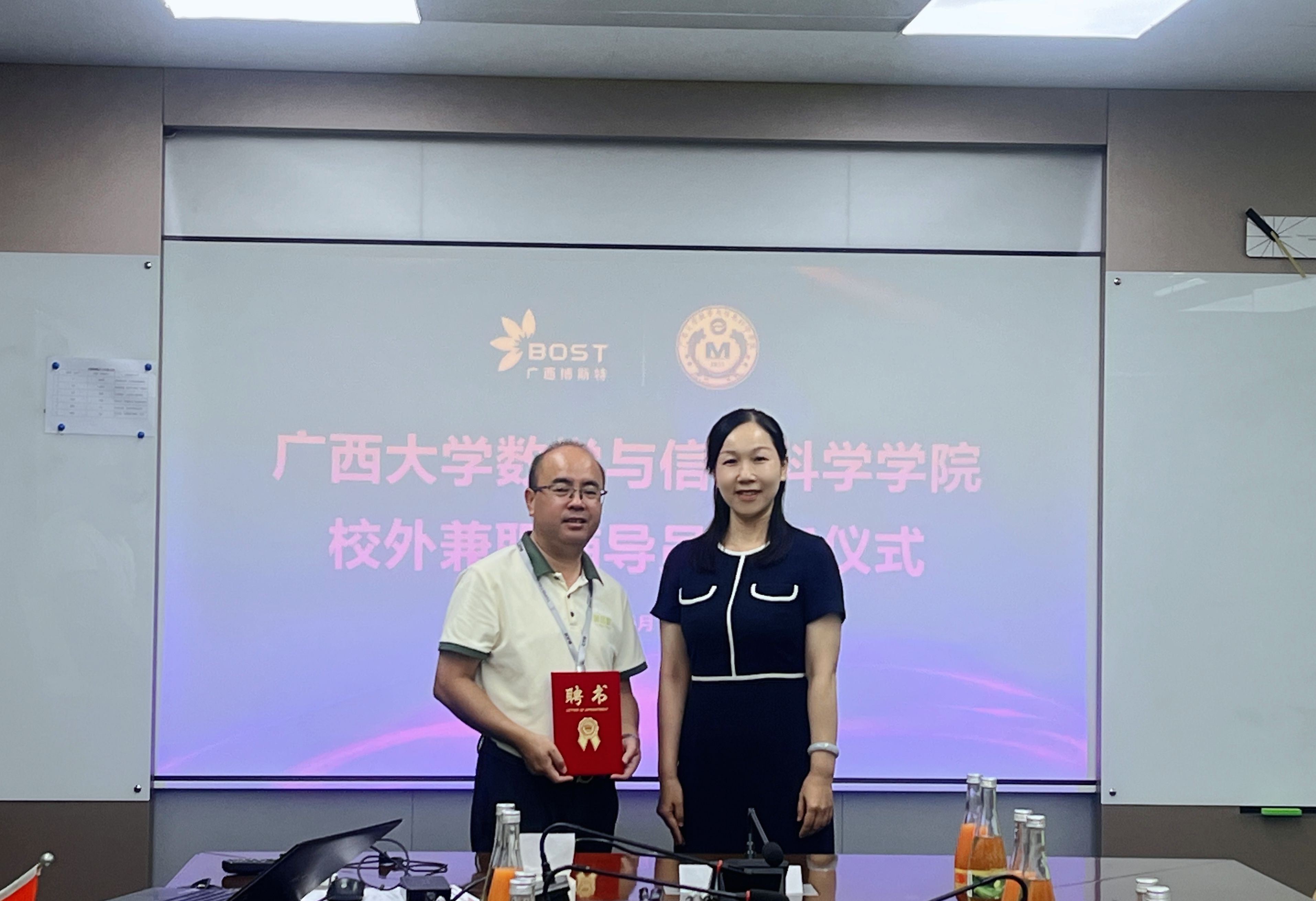 会上举行了永利官网校外兼职辅导员聘任仪式,吴华丽为张誉颁发聘书,聘任其为永利官网校外兼职辅导员。