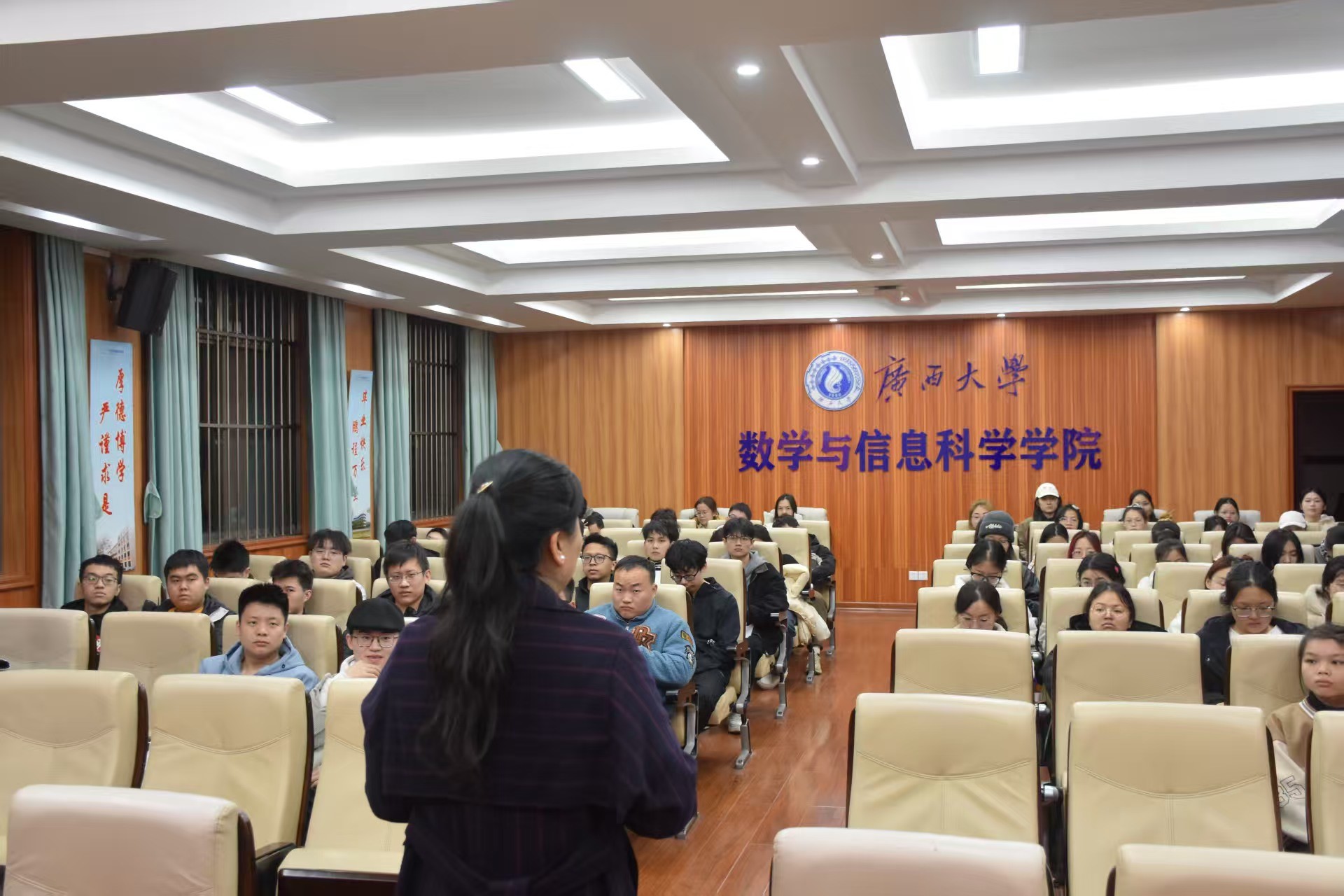 会上唐旭彬深入分析了当前的就业形势,她表示随着信息技术的快速发展、AI应用拓展和数字化转型的深入,数学与信息科学领域的就业前景广阔,但同时也面临着激烈的竞争。她鼓励毕业生们一要坚定信心,积极面对挑战,充分利用社会和学校提供的资源和平台,不断提升自己的综合素质和就业竞争力;二要保持乐观心态,对不同类型的工作岗位进行理性分析,根据个人兴趣和能力选择适合的职业道路。她引导毕业生们树立正确的就业观念,先就业再择业,在求职过程中应首先注重社会责任的担当,积极投身到国家和社会需要的基层地方,在创造社会价值的同时实现个人价值。