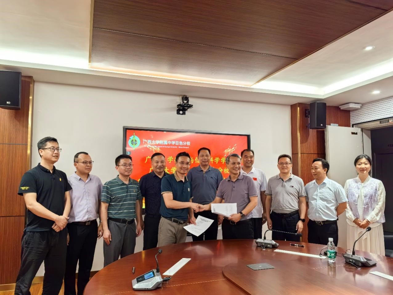 为深入学习宣传贯彻习近平新时代中国特色社会主义思想和党的二十大精神,宣传数学基础教育改革理念,开展基础数学研究和数学人才培养等方面的交流合作,3月27日数信学院党委书记覃宪儒、院长郭真华带队赴77779193永利官网附属中学百色分校开展交流合作活动。77779193永利官网附属中学百色分校校长李良刚及学校领导班子成员参加了本次活动。