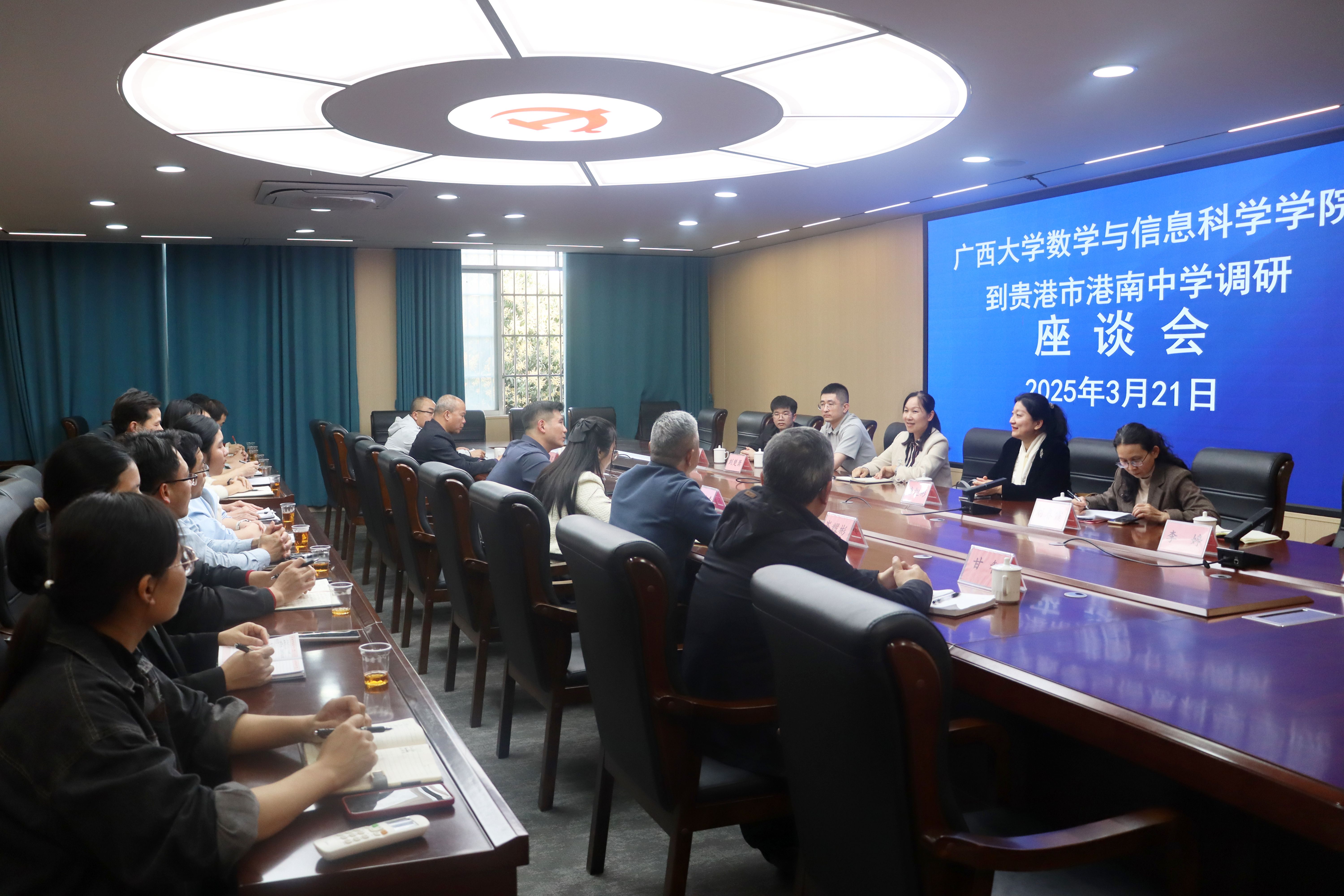 下午,调研组一行走访了贵港市港南中学,与港南中学班子成员和教师代表进行座谈,双方就加强高中高校衔接、提升人才培养质量,深化高等教育与基础教育协同创新,推动人才培养与教学实践深度融合,共建教学实习基地、促进毕业生就业等方面展开深入交流。