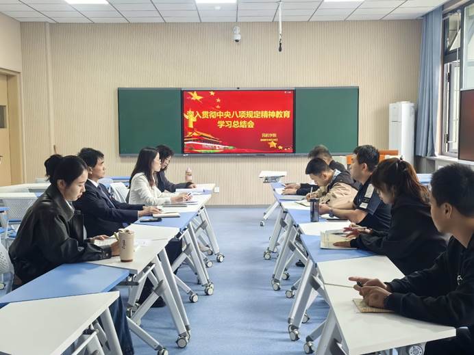 9月19日上午,beat365英国官网网站于阎良校区民航大楼智慧教室召开深入贯彻中央八项规定精神学习总结会议,全面总结学院学习教育开展情况和成效经验。学院党总支书记丁琦、副书记兼院长吕毅、总支委员、各支部书记出席会议。会议由丁琦主持。