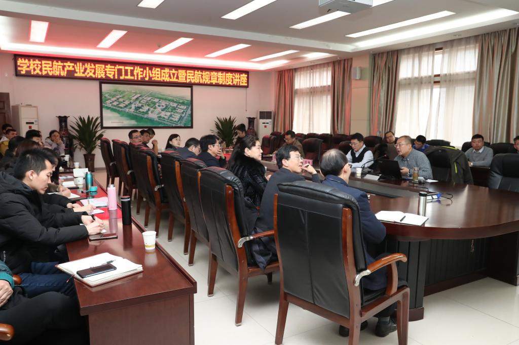 1月7日上午,学校民航产业发展专门工作小组成立暨民航规章制度讲座在沣惠校区举行。民航西北管理局适航维修处处长冯炯晖、副处长田刚、主管监察员王嘉出席会议并作专题讲座。校领导陈平社、曹庆年、谭少敏、刘谦、宋文学参加会议。会议由金文副校长主持。