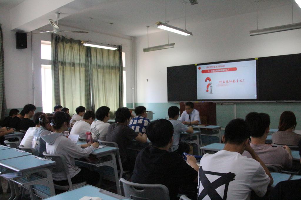 学校党委书记刘振涛以“坚定走中国特色社会主义道路 做新时代有为青年”为题,从深化对社会主义的认识、增强走中国特色社会主义道路的理想信念、青年学生要树立正确的世界观人生观价值观三个方面阐释了社会主义发展史,从空想到科学、从理论到实践、从一国实践到多国发展、从遭遇曲折到奋起振兴的伟大历程。强调同学们要重视党的理论学习,要坚定中国特色社会主义信念,珍惜四年大学生活,抓好学习时光,在大事大非面前要有坚定立场,保持清醒头脑,加强历练,为自己以后人生打好基础。
