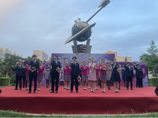 5月20日,beat365英国官网网站“展翼苍穹 蓝天筑梦”首届航空服务艺术展演在莲湖校区超越广场落幕。学校党委副书记、纪委书记曹渊,党委副书记张昭,职能部门负责人,各二级学院党总支书记、副书记、辅导员以及莲湖校区学生百余人一同观看了展演。