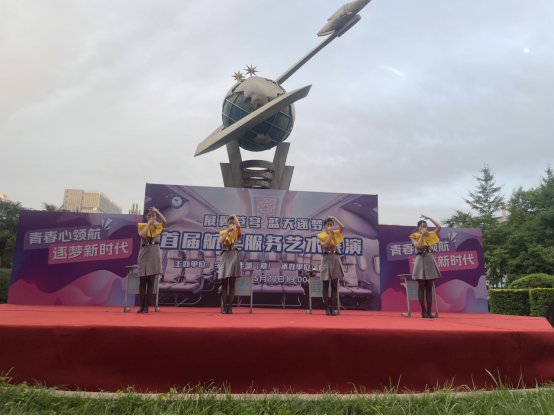展演中,同学们将走秀与制服相结合,用《制服走秀》拉开了展演的序幕,展现了四川航空、海南航空、东方航空、深圳航空、南方航空、湖南航空、厦门航空的制服,用制服之美彰显了同学们的魅力,触动了大家的视觉神经;《礼仪操》展现了民航服务人员的专业形象和服务质量;《航空安全演示》不仅演示了旅客对飞机上的安全设备、设施的使用方法,更展示了航空公司的整体形象与空乘人员的良好精神面貌;手语操《上春山》展现了桃红复含宿雨,柳绿更带春烟。若待上林花似锦,出门俱是看花人的美景;歌曲《星辰大海》用歌声表达了同学们的心声,描绘了同学们的未来。