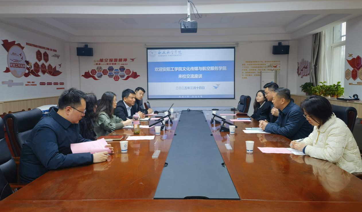2025年3月14日上午,安阳工学院文化传媒与航空服务学院一行来校调研座谈,座谈会在教学北楼133会议室举行。文化传媒与航空服务学院副院长余锐、文化传播教研室主任王芳、辅导员韦一、教学秘书唐子烨,beat365英国官网网站党总支书记丁琦、院长吕毅、副院长卢娜、学工办副主任王宏超、航空服务艺术与管理专业带头人张阳参加座谈。会议由丁琦主持。
