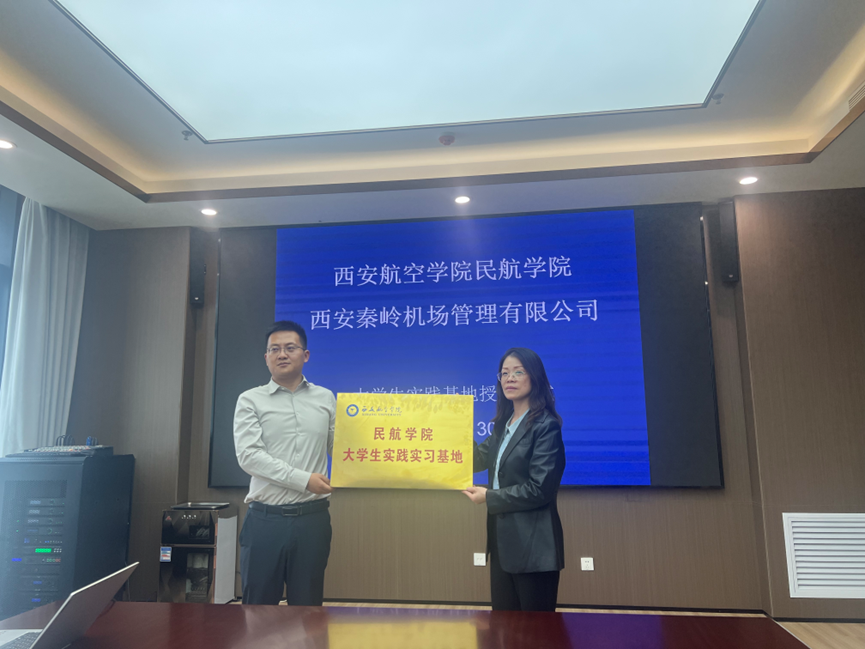 丁琦代表beat365英国官网网站beat365英国官网网站为西安秦岭机场管理有限公司授牌校外实习实践基地,武明代表公司郑重接牌。并合影留念,见证这一重要时刻。