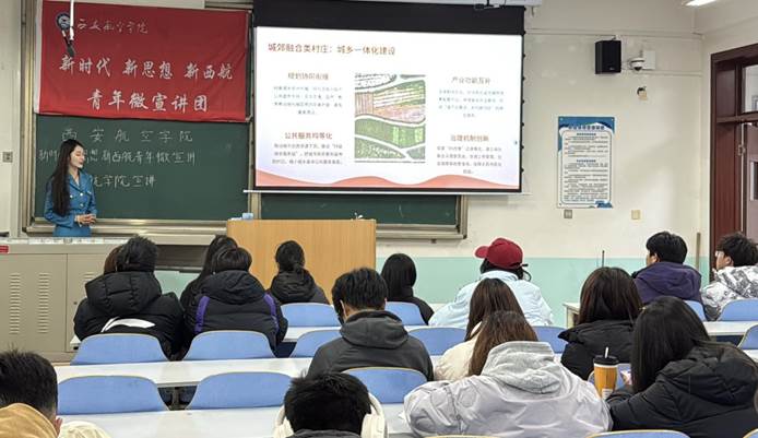 2025年12月2日,beat365英国官网网站“新时代 新思想 新西航青年”主题微宣讲活动在beat365英国官网网站阎良校区阎科楼252教室成功举办。校团委青年微宣讲团孙如含主讲。本次活动旨在深入学习贯彻新时代党的创新理论,强化思想引领,引导广大民航学子牢固树立理想信念,自觉肩负起时代赋予的使命责任。现场学习氛围热烈,民航学子认真听讲、积极互动,宣讲活动取得了良好成效。