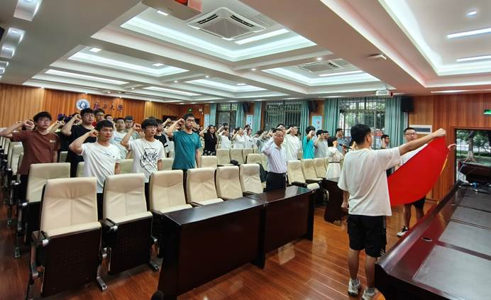 活动分两个阶段进行。第一阶段在学院109报告厅举行,首先由郭海燕副书记带领全体参会党员重温了入党誓词,进一步增强党员们理想信念和宗旨意识。随即毕业生党员代表陈正政发言,表达了自己响应习近平总书记号召,扎根基层沃野,磨练自己,为党和人民贡献青春力量的决心。